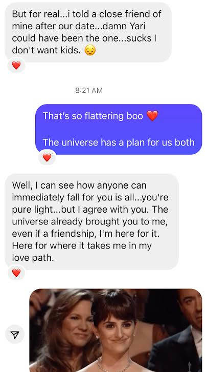 “it’s interesting because I think you disassociated”: this one was dangerous given that this man is a therapist and 50 years old. I could imagine my therapists’ face if I told her this story. Please note this was in reference to me talking about astrology, for “two minutes” per his recollection, specifically aries suns (he is an aries), and no I am not joking. This story will be in my book of essays, fur-sure.